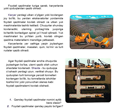 Siz qanday foydali qazilmalarni bilasiz? Ulardan qayerlarda foydalanish mumkin?