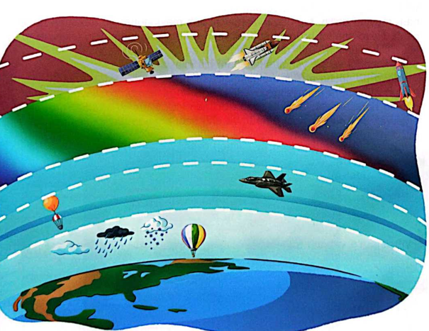 “atmos" - havo, “sfera” esa shar degan ma'noni bildiradi. Qadimgi yunonlar bu so‘z bilan nimani atashgan? Atmosfera — bu Yerning havo qobig'i. Gaz qatlamidan iborat bu qobiq sayyoramizni o'rab turadi va uni quyosh nurlanishidan, haddan tashqari issiq va sovuqdan himoya qiladi. Agar Yerda atmosfera bo‘lmaganida, kun davomida Yer sirtidagi harorat keskin o'zgarib: Yerning quyoshli tomonida, ya'ni kunduzi harorat 100°C gacha ko‘tarilgan, kechasi esa -100°C gacha pastga tushgan bo'lar edi. Atmosferasiz Yer qanday holatda boTishini tasavvur qilish mumkin. Buning uchun sayyoramiz yo'ldoshi bo‘lgan Oyga qarash kifoya. Oy - hayot uchun yaroqsiz: unga xavfli quyosh nurlanishi ta'sir qiladi. Oy quyosh nurlari ostida qanchalik tez qizisa, quyosh nurlari yo'qolgach, xuddi shunday tez va kuchli soviydi. Bundan tashqari, koinotdan Oyga juda ko‘p miqdorda toshlar tushadi. Buni Oy yuzasidagi zarba belgilaridan tushunish mumkin. Nima deb o'ylaysiz, nima uchun kosmik toshlar Oyga tushadi, lekin biz ularni Yerga tushganini deyarli ko‘rmaymiz?